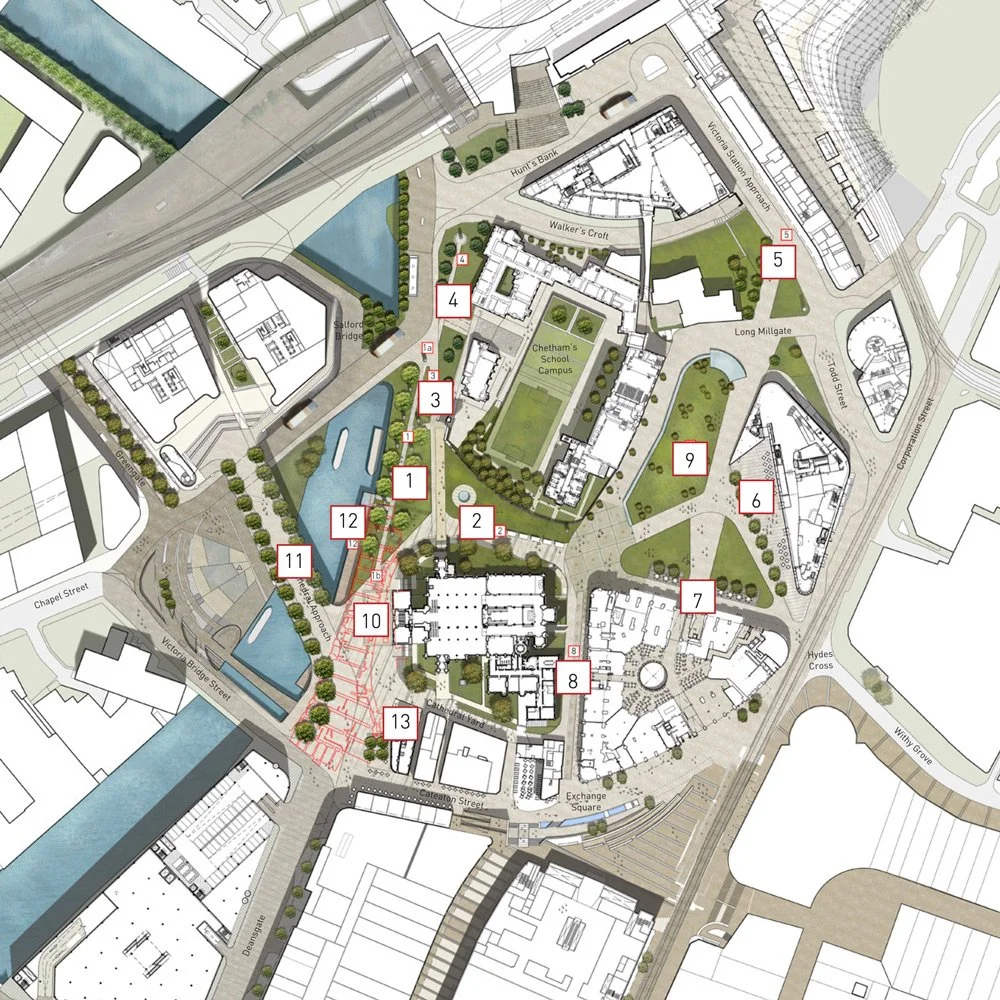 Chetham’s is the oldest surviving set of buildings in Manchester, dating back to the mid-15th century. Built in 1421 as a college for priests, it later became a hospital, then in 1653 was endowed by Humphrey Chetham as a free school and library. Remarkably, while the city around it has been reshaped many times, this site has kept much of its medieval plan: cloisters, stone walls, and oak interiors that still echo with centuries of learning. From monks to schoolboys to today’s young musicians, Chetham’s shows how purposes change even when the place endures.